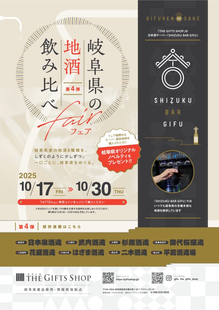 岐阜県の地酒飲み比べフェア第4弾を開催いたします。